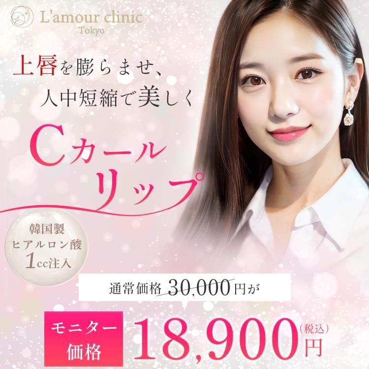 唇のヒアルロン酸注入と口角ボトックス、人中短縮ボトックスを組み合わせた施術です。