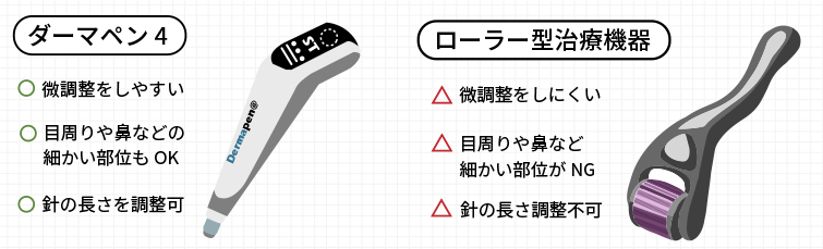 ダーマペンに使用される針は髪の毛レベルに細いため肌のダメージが少なく、回復スピードも速い点が特徴です。