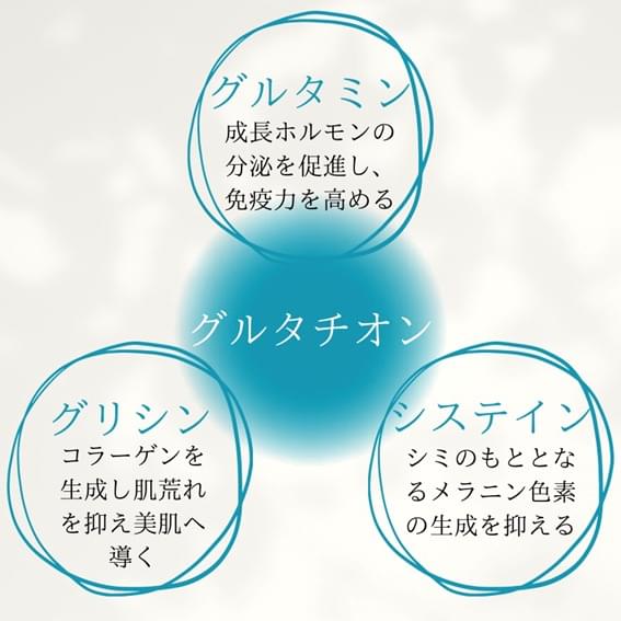 グルタチオンは、グルタミン酸・システイン・グリシンの3つのアミノ酸により生成される成分で、体内のほとんどの細胞に存在しています。